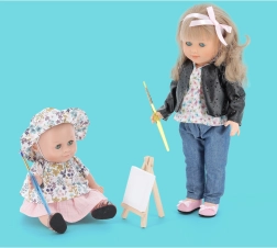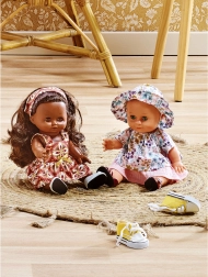 Panenka Ally a gyermekével minden kalandra készen áll, gyönyörű francia ruhában szandállal és virágos kalappal. Rugalmas vinilből készűlt, vanília illatú, ami kellemes érzetet kelt és gyengédséget sugall a gyerekek számára.