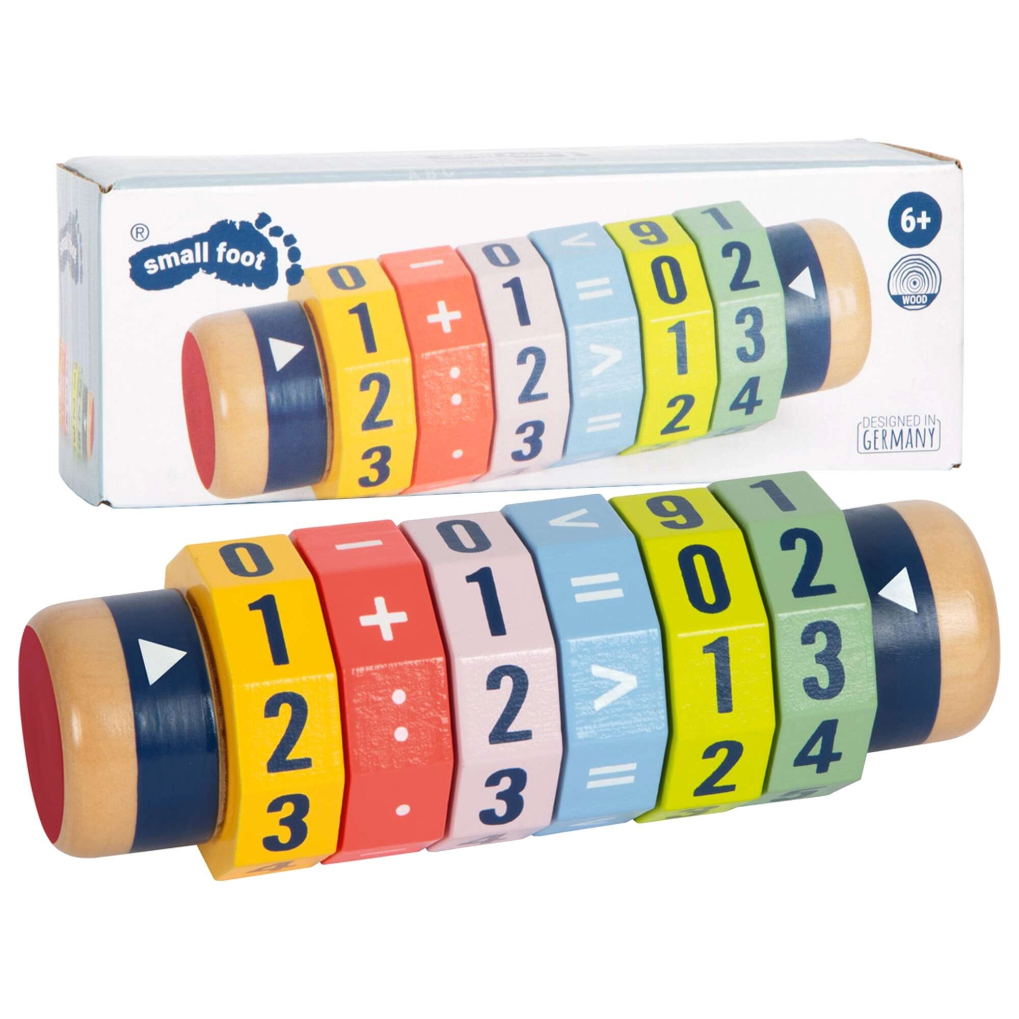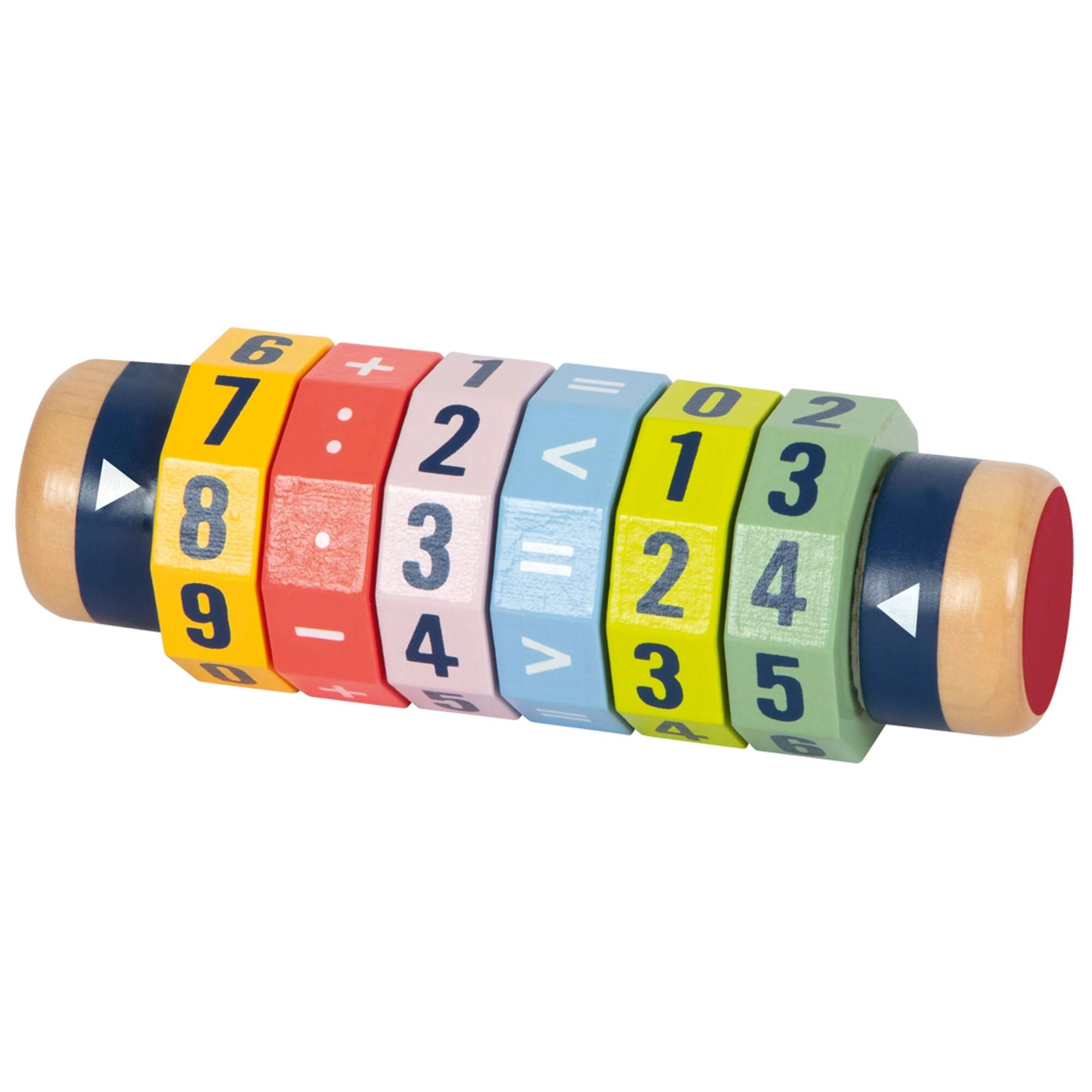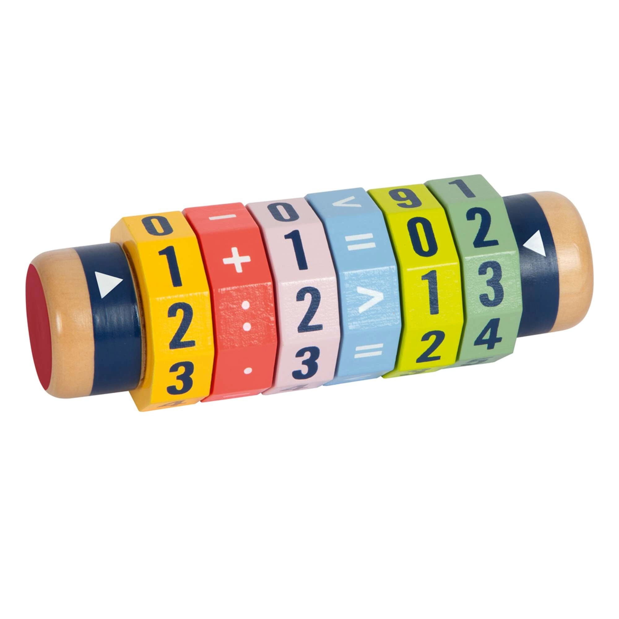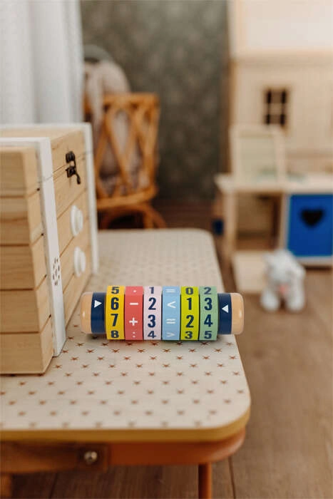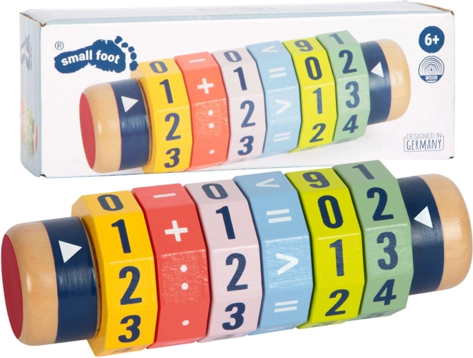 Fedezd fel a matematika játékos útját! A hat forgó gyűrűvel ellátott fa henger lehetővé teszi a gyerekeknek egyszerűbb és bonyolultabb egyenletek és számösszehasonlítások létrehozását. A világos színeknek és az erőteljes számjegyeknek köszönhetően a tanulás játékossá válik, miközben fejlődik a finommotorika és a koncentráció.