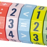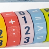 Ez a minőségi fa eszköz a vizuálisan vonzó dizájnt ötvözi a gyakorlati tanulással. Hat forgatható szegmens számokkal és matematikai jelekkel lehetővé teszi a gyerekeknek, hogy saját példákat állítsanak össze a összeadás, kivonás, szorzás és osztás gyakorlásához. A gyűrűk forgatásával egyenletek jönnek létre, amelyek megoldásra ösztönzik a gyerekeket, és természetes módon erősítik numerikus műveltségüket.