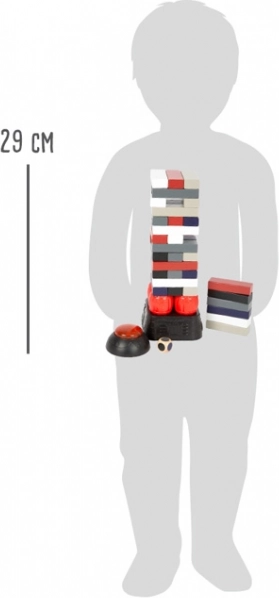 Akciódús egyensúlyozó játék kicsiknek és nagyoknak, amely próbára teszi a gyorsaságot és az ügyességet. Húzd ki a színes elemeket a dobókocka színe szerint, miközben telik az idő – ha nem nyomod meg időben a buzzert, az alap rezegni kezd, és a torony leomlik. A játék rezgő alapot, 2 nehézségi szinttel állítható időzítőt kínál, és játszható klasszikus ingatag toronyként talp nélkül is. Remek szórakozás, amely fejleszti a finommotorikát és a koncentrációt. Életkor: 3 éves kortól.