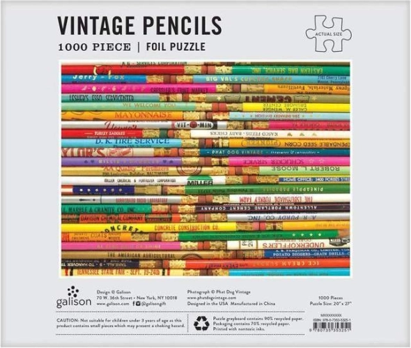 Stílusos puzzle színes, vintage ceruzák motívummal a GALISON és a PHAT DOG VINTAGE kiadásában, 1000 darabbal és finom részletekkel. Örömet okoznak a fényes, aranyfóliás akcentusok, a prémium minőség és a pontos illeszkedésű darabok újrahasznosított papírból. Része egy ismertető a művészről és egy masszív, matt felületű ajándékdoboz.
