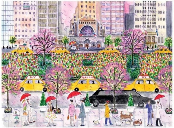 Élvezze a pihenést és a szórakozást a 1000 darabos, Michael Storrings illusztrációjával készült prémium kirakóval. Gyönyörű városi jelenet sárga taxikkal és virágzó fákkal, precízen vágott elemek, nem mérgező festékek és újrahasznosított papír az környezettudatos kirakáshoz. A csomag része egy művészeti ismertető füzet is.