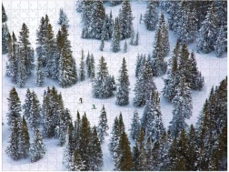 Élvezze a két lenyűgöző fotót egyben a GRAY MALIN 500 darabos, kétoldalas puzzle-jével. Az egyik oldalon téli táj fenyőkkel, a másikon színes síelők a havon várnak. A fényes és matt felületnek köszönhetően az oldalak könnyen megkülönböztethetők. A puzzle újrahasznosított papírból készül, nem mérgező festékekkel nyomtatva – ideális ajándék kirakó- és fotóművészet-rajongóknak.