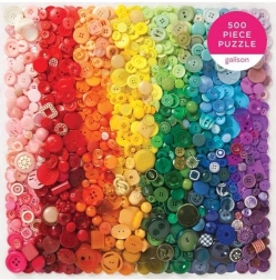Szivárványos gombok Puzzle lebilincselő élményt nyújt 500 darabbal, amelyek gyönyörű szivárvány palettába rendezettek. Ez a csomag ideális szórakozáshoz és készségfejlesztéshez is.