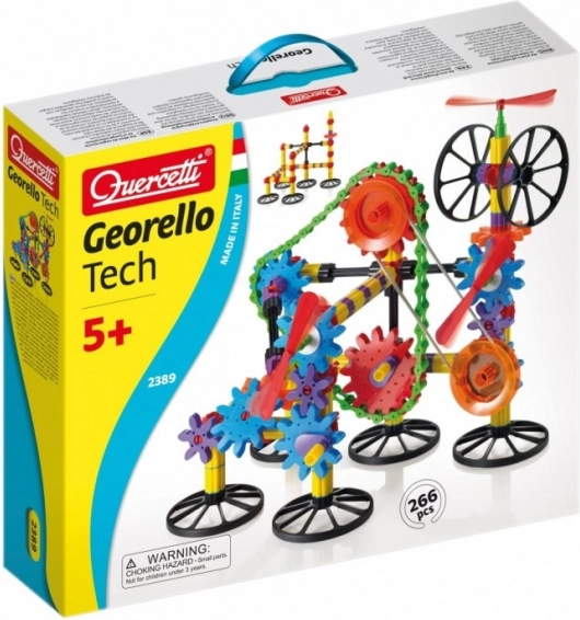 A Georello Tech építőkészlet forgó mozgást továbbít távolabb elhelyezett áttételek között, és szemléletesen mutatja be azokat az alapvető mechanikai funkciókat, amelyek a valós gépekben is megtalálhatók. A láncnak és a rugalmas szíjnak köszönhetően a gyerekek nagyobb távolságra is összekapcsolhatják a fogaskerekeket, így még összetettebb konstrukciókat hozhatnak létre.
