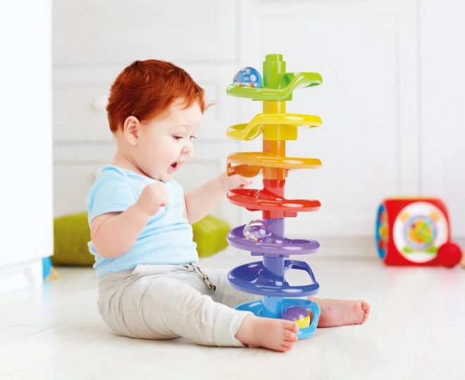 A Spiral Tower nagy, színes elemeket tartalmaz, amelyek biztonságosak a kisgyermekek számára. Így felhőtlenül játszhatnak, miközben fejlődik az érzékelésük.