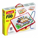 Fedezd fel a kreatív játék varázsát a Quercetti Filò hímző készlettel, amely támogatja a gyerekek fantáziáját és finommotoros készségeit. A speciális tollak segítségével a gyerekek különböző képeket hozhatnak létre, a színes zsinórokat a játéktábla nyílásaiba helyezve, ami örömöt és szórakozást nyújt számukra.