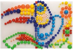 Quercetti Fanta Color Modular egy oktatási játék 4 és 8 év közötti gyerekek számára, amely a kreativitást és a kézügyességet támogatja vidám, színes pötyik segítségével történő mozaikok készítése által.