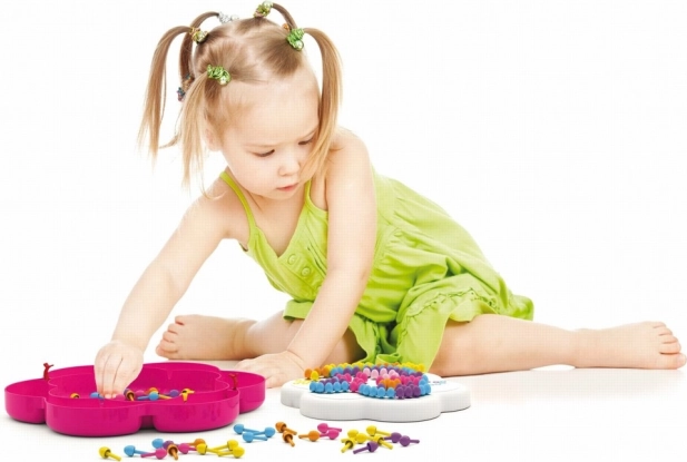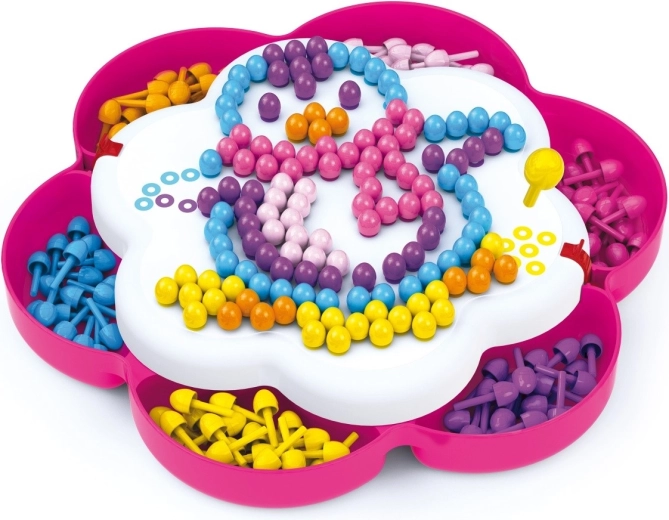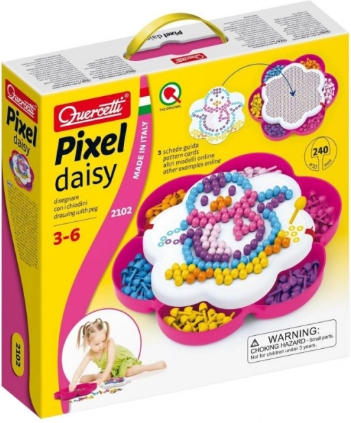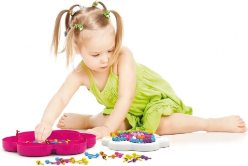 Nagy, lyukacsos, margaréta alakú játéktábla és külön rekeszek az egyes pöttyöknek – ez minden, amire szükség van végtelen számú, sokszínű kép megalkotásához. A doboz középső részében a pöttyök keveredhetnek, a doboz peremén lévő rekeszek pedig hat szín szerint segítenek szétválogatni őket, hogy kirakás közben a kívánt szín mindig kéznél legyen. A három mellékelt minta és néhány további, ingyenesen letölthető sablon révén mindenki hosszú órákon át szépen szórakozhat csodás képek kirakásával. Ez a fajta játék ráadásul ellazítja az elmét, javítja a koncentrációt, és a gyerekeknél fejleszti a színészlelést. Csomag tartalma: 1 doboz, 1 lyukacsos, margaréta alakú játéktábla, 240 darab, 10 mm átmérőjű pötty hat színben, 3 minta. Fő jellemzők: fejleszti a finommotorikát, a kreativitást és a fantáziát; 3 éves kortól.