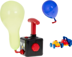 Szórakoztató készlet kis felfedezőknek, amelyben a kisautókat a lufik levegője hajtja – elem nélkül és töltés nélkül. Az egyszerű pumpának köszönhetően a gyerekek felfújják a lufit, megnyomják a gombot, és a kisautó előre kilő. A készlet 15 részből áll, beleértve 2 kisautót és 10 lufit, végtelen versenyekhez, kísérletekhez és játékos fizikatanuláshoz.