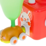 A kézipumpa felfújja a lufit, a gomb megnyomására pedig az autó előrelő. A gyerekek játékosan sajátítják el a légnyomás és a mozgás elveit – kábelek és elemek nélkül.