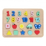A beillesztős puzzle nemcsak a számok és formák tanulását támogatja, hanem fontos készségek – mint a finommotorika és a kéz–szem koordináció – fejlődését is. Színes dizájnja és oktatási elemei miatt a hároméves kortól ajánlott gyerekek egyik kedvenc játéka lesz.