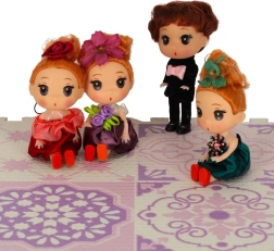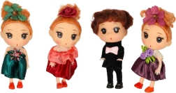 Ez a csodaszép minibaba-készlet ideális kiegészítő bármely babaházhoz. A gyerekek imádni fogják a igényes kidolgozást és az elegáns öltözeteket – a fiú frakkban rózsaszín csokornyakkendővel, a lányok pedig ruhákban lila, bordó és tengerészkék színben, hajdíszként virágos kiegészítővel. Az öltözetek a babákhoz vannak rögzítve, így nem vesznek el.