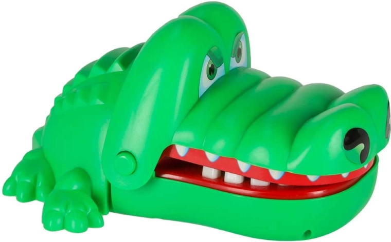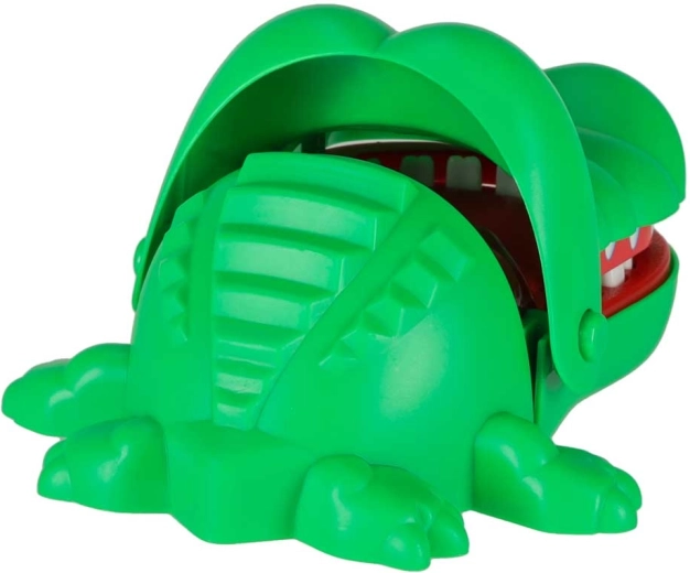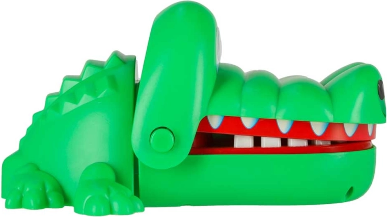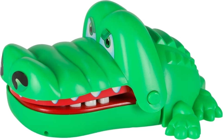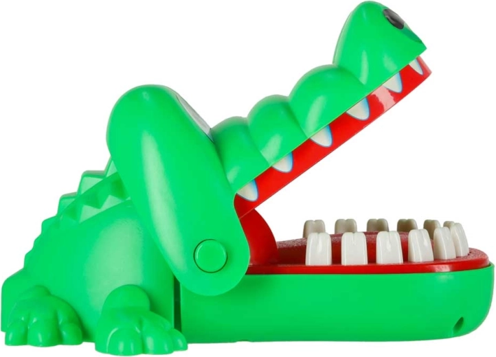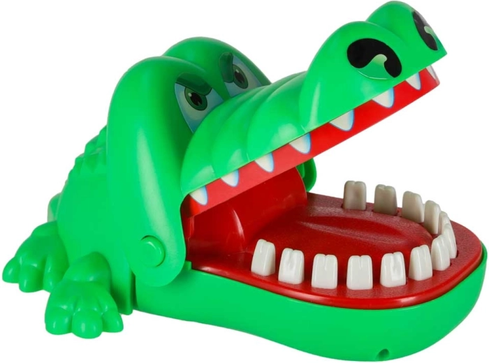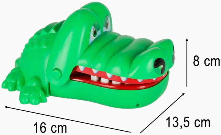 A krokodilos ügyességi játék egyszerű, izgalmas és addiktív. Minden szájnyitás véletlenszerűen kijelöl egy fájó fogat, így sosem tudod, mikor csap le a krokodil. A biztonságos, lekerekített fogaknak köszönhetően kisebb gyerekek számára is alkalmas, és remekül fejleszti a megfigyelőkészséget és a türelmet.