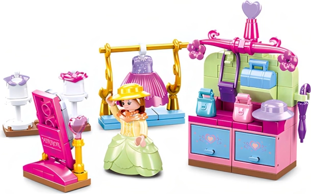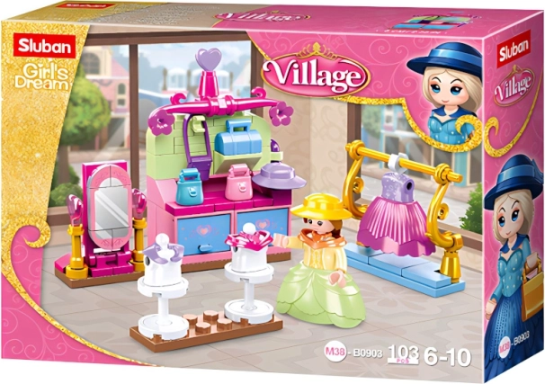 A Sluban Korhű ruházati bolt építőkészlet egyszerűsége és a saját játékszcenáriók alkotásának lehetősége miatt remek szórakozást nyújt a gyerekeknek. A szett 103 elemet és egy figurát tartalmaz, így különféle divatjelenetek valósíthatók meg az üzletben.
