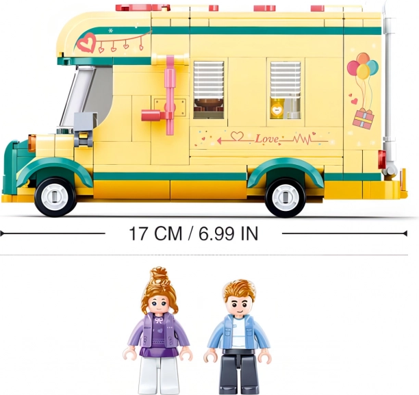 - Lakóautó építőkészlet, 2 figura, kiegészítők, útmutató