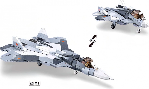 Építsd meg a modern orosz SU-57 sugárhajtású vadászgépet 2 az 1-ben kivitelben a Sluban Model Bricks készletével. A szett 893 elemet, 1 figurát és közepes nehézségi szintet kínál a remek építési élményhez. A tartós ABS műanyagból készült elemek kompatibilisek a LEGO, Cobi és Mega Bloks készletekkel, az innovatív figurák forgatható és billenthető részekkel rendelkeznek a jobb játszhatóságért.