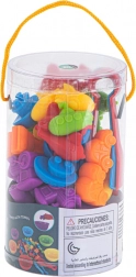 Ez a színes készlet örömtelivé varázsolja a matematika első lépéseit. A gyerekek színek szerint válogatják a járműveket a tálkákba, számolnak, mennyiségeket hasonlítanak össze és egyszerű feladatokat oldanak meg. A csipeszek természetes módon fejlesztik a fogást és a kéz–szem koordinációt is.