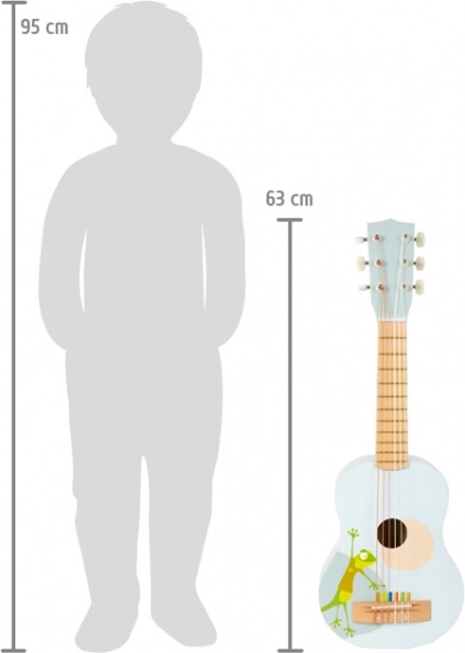 Ez a minőségi, fából készült gyerek gitár ideális a kis zenészeknek 3 éves kortól. A színes húrok segítenek a hangok közti tájékozódásban, így gyorsabban elsajátíthatók az első dalok. A könnyű szerkezet és a kényelmes 63 cm-es méret megkönnyíti a tartást és a játékot.