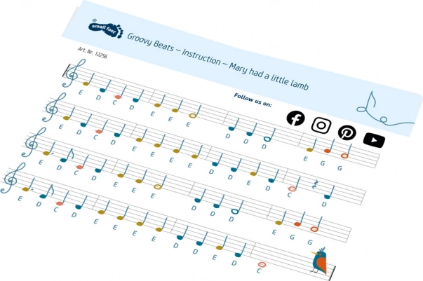 Az elegáns és stabil small foot Groovy Beats gyerekzongora kiváló választás a korai zenei neveléshez. A természetes fa, a modern színek és a gyerekeknek szánt motívumok kombinációja látványos kiegészítője a gyerekszobának. A mellékelt billentyűmatricák megkönnyítik a tájékozódást és az első darabok eljátszását, míg a kották szórakoztató indulást biztosítanak.