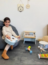 Indítsd be az otthoni koncerteket ezzel a stílusos gyerek dobbal! Az állítható pamut vállpántnak, a hangfogóval ellátott, halk dobverőknek és a masszív fa szerkezetnek köszönhetően ideális belépő a zene világába. Támogatja a ritmusérzéket, a kéz–szem koordinációt és a finommotorikát, miközben remekül mutat a gyerekszobában.