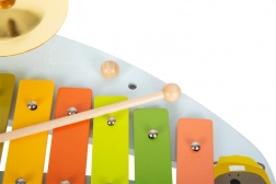 A csomag tartalmaz két robusztus, tömör fából készült ütőpálcát és áttekinthető kottákat (pl. egyszerű gyermekdalokhoz), így a játék az első naptól kezdve intuitív és szórakoztató. A vidám dizájn a természetes fa felületet modern kék árnyalatokkal ötvözi, így bármely gyerekszobába illik.