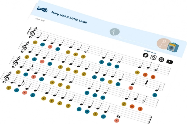 A különböző színű billentyűknek köszönhetően a gyerekek könnyedén eljátsszák első dalaikat a mellékelt kották alapján.