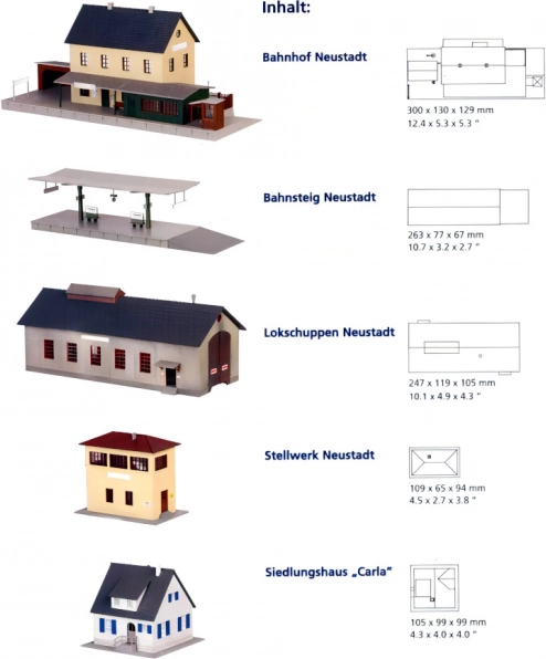Az átfogó épületkészlet lehetővé teszi, hogy gyorsan felépítse a Neustadt állomás és környezete hiteles jelenetét. A kidolgozott színvilág és a pontosan illeszkedő műanyag elemek kiváló megjelenést és egyszerű szerelést biztosítanak. A csomag részletes útmutatót tartalmaz, így a tájtervezésre és az egyes elemek elhelyezésére összpontosíthat.