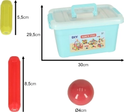 A szett egy praktikus műanyag tárolóban érkezik, amely megkönnyíti a játékok rendbentartását.