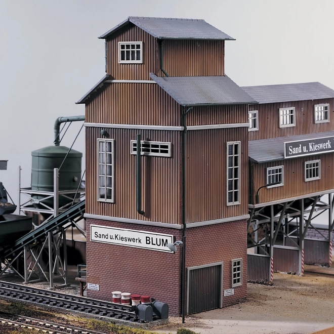 A PIKO Authentic Edition sorozat E. Blum homokbánya osztályozó tornya egy egységes építőkészlet-sorozat része, de önállóan is alkalmazható. Alul egy kis rámpával rendelkezik, és számos részlettel, ereszcsatornákkal, világítással, valamint természetesen a technológiai felszereltség élethű részleteivel, különféle szellőzőkkel és szerelvényekkel van ellátva. Az épület ajtói működőképesek és nyithatók. Az épület egyedileg bővíthető rakodóhíddal, silóval szállítószalaggal, vasúti daruval és irodával. A készlet része egy alap is, amely a közvetlen környezet kidolgozását szolgálja, különösen a szállítószalagos silóval történő bővítéshez előkészítve. A képen látható egyéb tárgyak (autók, figurák stb.) nem részei a csomagnak. A PIKO műanyag miniatűrök a valósághű vasútmodellek és diorámák tervezésénél találnak alkalmazásra. Kidolgozott színvilágukkal, ebben a sorozatban patinázással kiegészítve, a lehető legnagyobb hűséggel utánozzák eredetijeiket, amely egyes esetekben a mellékelt matricákkal tovább fokozható. Az egyes elemek részletgazdag és pontos műanyag fröccsöntvényei pontosan illeszkednek egymáshoz, és az egyes készletekhez mellékelt részletes útmutatónak köszönhetően az összeszerelés egyszerű, így értékes idejét az egyedi tájkialakításnak és a jelenet egyes elemei elrendezésének szentelheti. A modellekhez kínált tartozékok között változatos kiegészítőket, fogyóanyagokat, valamint útmutatókat talál a vasútmodellek tervezéséhez hasznos tanácsokkal. Németországban készült, a legszigorúbb minőségi szabványoknak megfelelően. Főbb jellemzők: H0 (1:87) méretarány bővíthető további készletekkel élethű színezés patinázással egyszerű összeszerelés Németországban készült Dokumentáció: az 61124 sz. modell összeszerelési útmutatója