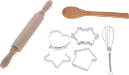 Az öltözet mellett faeszközöket is tartalmaz, beleértve a sodrófát, kanalat, néhány formát a tészta kivágásához és habverőt. Minden segédeszköz tartós anyagokból készült, ideális órákig tartó játékos főzéshez és sütéshez.