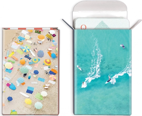 Élvezze az egyedülálló kártyázás élményét ezzel a stílusos készlettel, amely ötvözi a hagyományos játékelemeket a lenyűgöző légifotókkal a tengerpartokról. A készlet két 54 lapos paklit tartalmaz, összesen 108 kártyát.