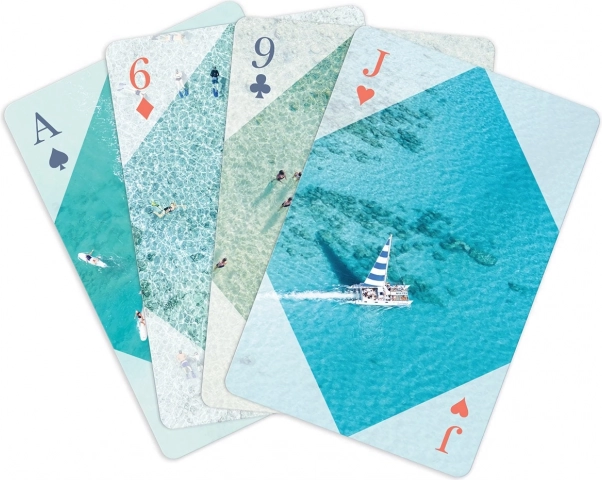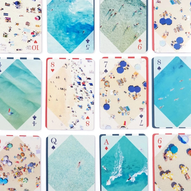 Minden kártyát egyedi légifotók díszítenek a strandokról, amelyek különleges esztétikai értéket adnak a kártyajátékának.
