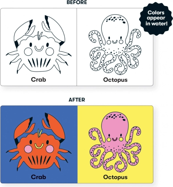 Fedezze fel az egyedülálló fürdőjátékok varázsát. A látszólag egyszerű képes könyvecske vízbe merítve bájosan életre kel élénk színekkel. Könnyen leköti a gyerekek figyelmét és szórakoztat fürdés közben, miközben segít fejleszteni kognitív készségeiket. A játék arányait kifejezetten a kicsi és ügyetlen gyerekkézhez igazították. Főbb jellemzők: 6 oldal képekkel, a színek aktiválása vízbe merítéssel, grafikai tervezés: Marijke Buurlage