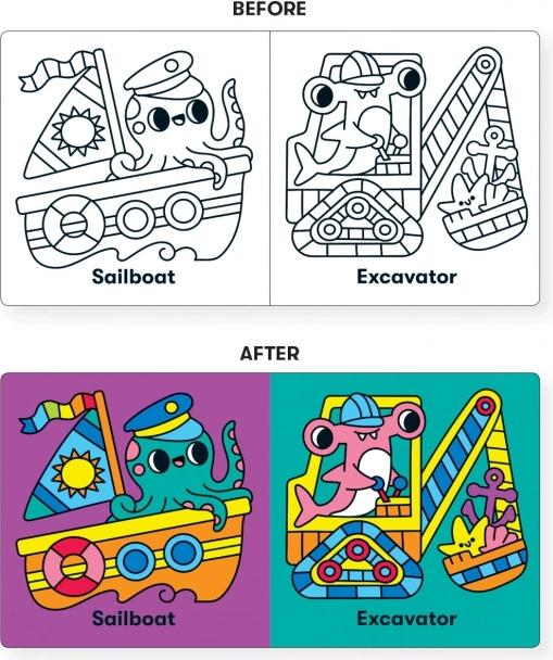 Ez az eredeti MUDPUPPY vízi könyvecske tengeri élet témával minden fürdésnél örömet szerez a gyerekeknek. Vízbe merítve a képek azonnal kiszínesednek, és felfedik a rejtett részleteket, melyek ösztönzik a kíváncsiságot és az érzékelés fejlődését. A könyv könnyű, kellemes tapintású, és a legkisebbek számára is biztonságos.