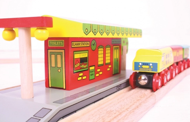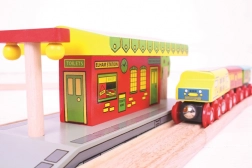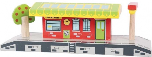 Az állomás minőségi, felelősen beszerzett fából készült, és megfelel a hatályos európai biztonsági szabványoknak. A világos színek és a letisztult vonalak barátságos hangulatot teremtenek a kis utasok számára.