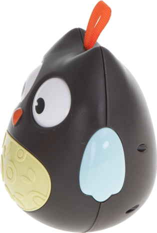 Ez a szenzoros „búgócsiga” bagolyka ideális játék a korai fejlődéshez. A biztonságos, élek nélküli formának köszönhetően kellemes fogású, és meglökés után mindig visszatér függőleges helyzetbe, ami újra és újra játékra hívja a gyerekeket.