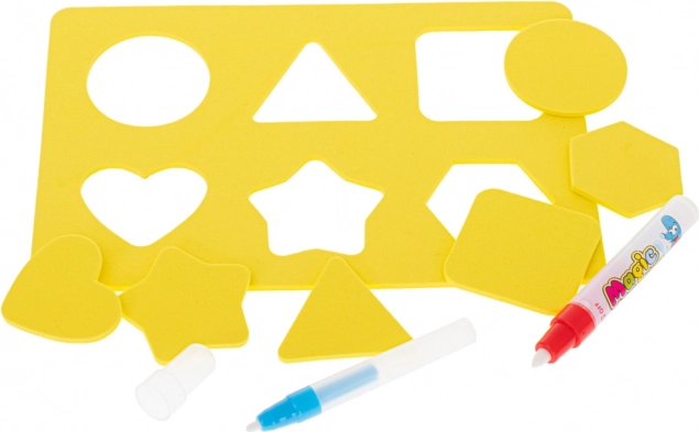 A készlet tartalmaz sablonokat és vízi tollakat, amelyek sosem száradnak ki, csak vízzel kell feltölteni őket.