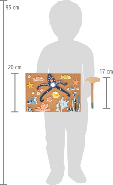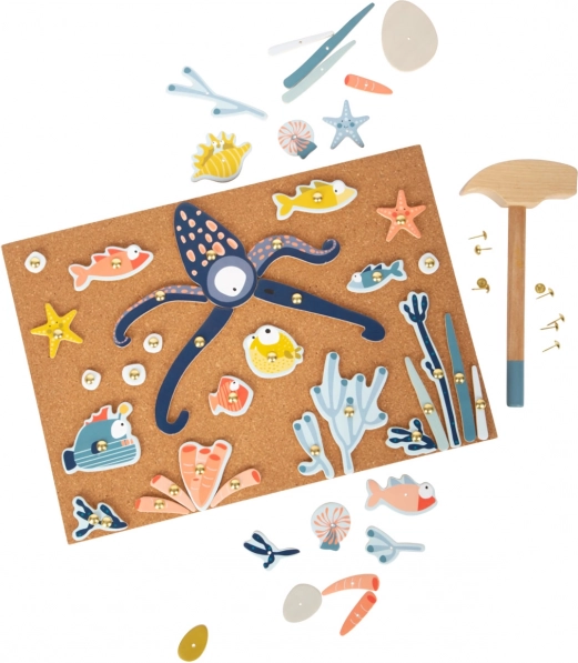 A mellékelt kalapács és szögek lehetőséget adnak a gyerekeknek, hogy fejlesszék készségeiket és egyedi tengeri jeleneteket alkossanak. Ideális választás a kreativitás és a képzelet támogatására.