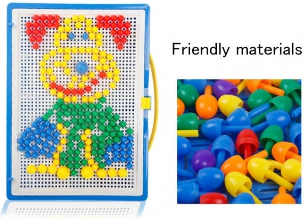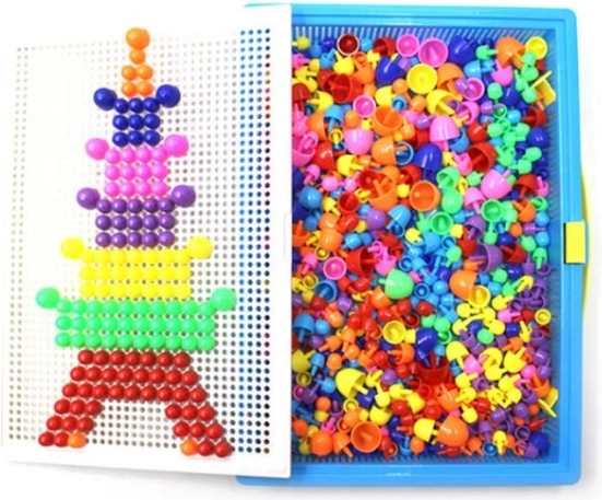 Ez a játék generációk gyermekeinek kedvence és a felnőttek nosztalgiával emlékeznek rá. Egyszerű szerkezet, mely színes műanyag gombákból áll különböző méretekben és perforált alaplapból azok behelyezésére. Mindez egy tárolható bőröndben, hogy gyermeke bárhová magával vihesse kedvenc játékát.