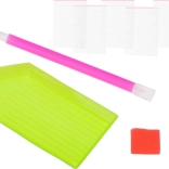 A készlet mindent tartalmaz, amire szükséged van egy ragyogó műalkotás megalkotásához: kép, színes kövek, applikátor, száraz ragasztó és tálca.