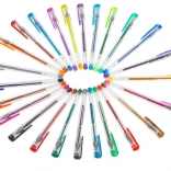 Ez az univerzális zseléstoll-készlet ideális gyerekeknek, diákoknak és felnőtteknek egyaránt. 25 gondosan válogatott darabot tartalmaz: 12 csillogót látványos díszítéshez, 7 metált stílusos kiemelésekhez, 3 fluoreszkálót feltűnő jelöléshez és 3 klasszikus színt (fekete, kék, piros) a mindennapi íráshoz. Az átlátszó tolltest lehetővé teszi a tinta szintjének ellenőrzését, a finom hegy pedig precíz vonalakat biztosít.