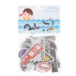 Puha és tartós habból készült, elég megnedvesíteni és felragasztani a kádra vagy csempére. A vízbe merítés nem igényel ragasztót, elég megnedvesíteni. Színes és formagazdag darabok vonzzák a figyelmet és serkentik a képzeletet.