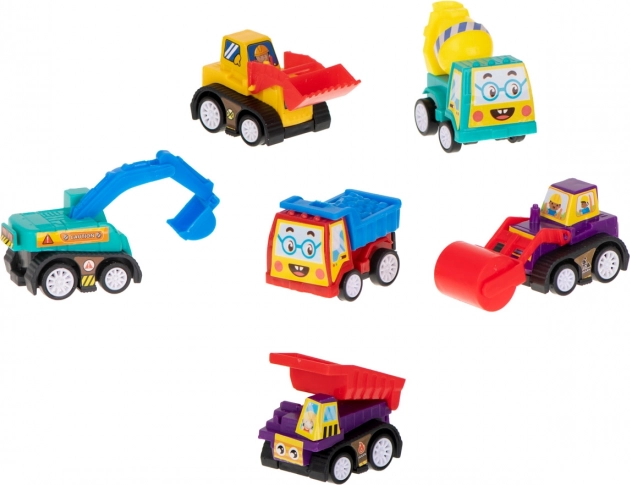 Bemutatjuk a hat színes építőipari autóból álló készletet súrlódásos meghajtással, amelyeket csak meglökni kell, és önállóan haladnak. Ezek az autók stimulálják a gyermekek fantáziáját és örömet okoznak a játék során.