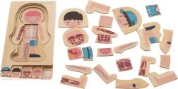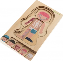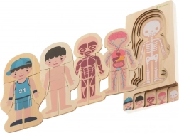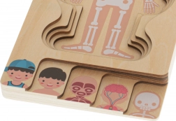 Fából készült, réteges emberi test puzzle egy oktató készlet, amely segít a gyerekeknek felfedezni az emberi szervezet titkait. Minden réteg más-más rendszert mutat be, mint a csontok, izmok és szervek, szórakoztató és interaktív tanulási formát kínálva.