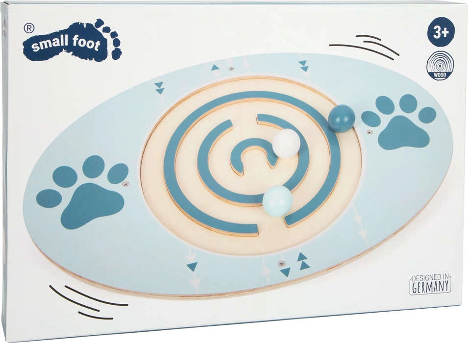 A Small Foot fa egyensúlyozó deszka játékot és mozgást egyesít. Az ovális felület spirális pályával és szabadon mozgó golyókkal próbára teszi az egyensúlyt – a deszka billentésével a golyókat a labirintuson vezeti, miközben fejleszti a kéz–szem koordinációt, a megfigyelőképességet és a stabilitást.