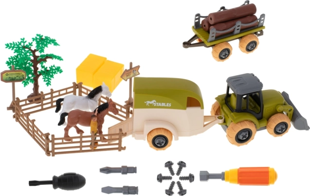 A készlet két csavarhúzó eszközt tartalmaz, amelyek lehetővé teszik a traktor alkatrészeinek cseréjét, és lehetőséget adnak az elemek össze- és szétszerelésére.