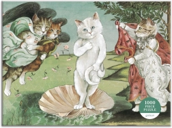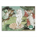 Klasszikus művészet macskás játékossággal: ez a puzzle Botticelli Vénusz születése című művét a Susan Herbert által megalkotott, humoros macskás jelenetté formálja. Tartalmaz 1000 darabot precíz kivágással a gördülékeny kirakáshoz, masszív, matt felületű dobozban érkezik, és tartalmaz egy képes mintát is. Remek választás macska- és művészetkedvelőknek 8 éves kortól.