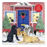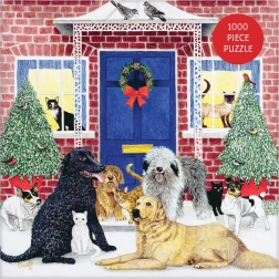 Fedezze fel a karácsony varázsát kutyákkal, macskákkal és ünnepi díszítéssel teli jelenettel egy meghitt kunyhó előtt. Az 1000 darabos kirakó gondos építést kínál, és elkészülve gyönyörű képet hoz létre, amely a szemet és a szívet is megörvendezteti.