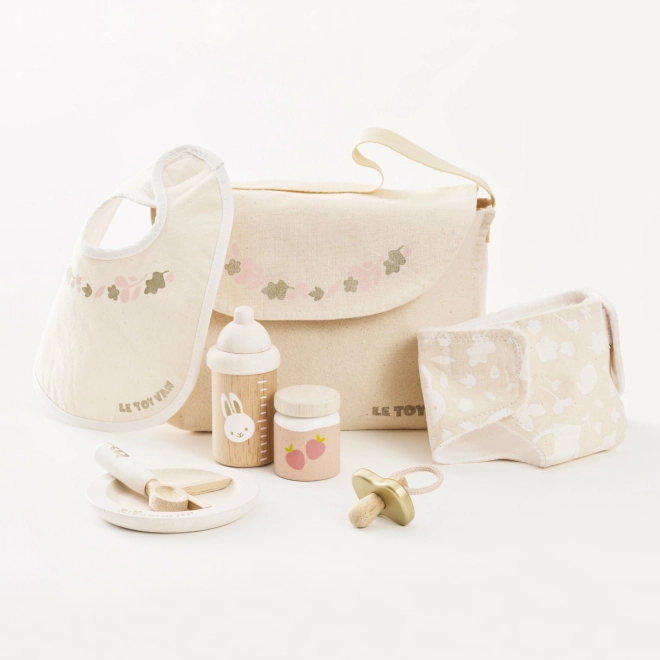 A babák és plüssök gondozása soha nem volt ennyire szórakoztató és inspiráló. Le Toy Van gondozó készlet teljes felszerelést kínál a kis gondozóknak. Tartalmaz egy textil pelenkázó táskát dekoratív mintával, cumit, partedlit, pelenkát, tányért, kanalat, bébiételt és cumisüveget. Minden darabot fenntarthatóság és minőség figyelembevételével készítettek, hogy sok óra játék során kitartson.